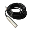 Cuerpo de acero inoxidable con sensor de presión hidrostática piezo-resistivo. Ofrece alta precisión, estabilidad, y resistencia a la corrosión.